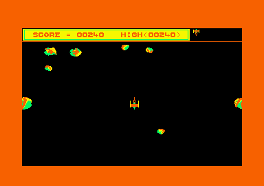 There are two games that people remember as being the typical scourge of the arcades in days long past: Space Invaders and Asteroids. Having always said that nostalgia ain't what it used to be, I was pleased to see somebody has put one of them on the Amstrad at last. Kuma seem to have recovered from their universally decried Siberian/North Sea Adventure fiasco and hit back with a classic that makes up for it. The original was on a one colour vector display but Kuma have improved things and used the four available colours in mode one to create a more realistic 3D effect. The sound effects are varied and up to Kuma's usual standard. In order to dodge the rocks in an unavoidable and catastrophic situation, the good old hyperspace is there but this can be replaced by a number of new options. Instead of leaping out of hyperspace and landing in a rock, it is now possible to flip round, go into reverse, put up a shield or use a smart bomb. With shields and smart bombs you only get three cracks at it and the smart bombs do not wipe out asteroids. The 'Pot Luck' option is good for a laugh. Your ship rotates evenly but the boulders flicker a bit as they tumble, a sort of rock 'n' roll. This is especially noticeable when two rocks overlap and one of them is "squared ofF by the sprite routine. This is not the sort of game that you should play whilst waiting for your pizza to cook, it ends up looking like it caught a laser blast. ACU #8510