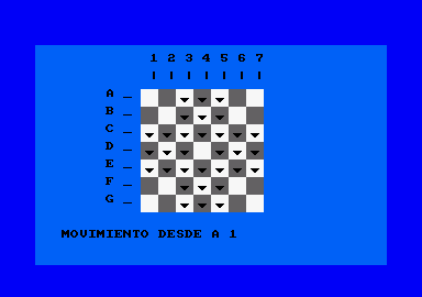 Este programa es un juego de inteligencia que tiene lugar en un tablero de 7 X 7 casillas, semejantes a las del ajedrez y las damas. Al comenzar el programa se dibujará el tablero, colocándose a continuación las 32 fichas que componen el juego, ya que tanto la casilla central como los grupos de cuatro casillas situadas en las cuatro esquinas se encuentran vacías. El objetivo del juego está en dejar solamente una ficha en el tablero, comiéndose las demás con saltos similares a los de las damas, o sea, la ficha salta desde la casilla de origen a la casilla de destino, y la ficha situada entre ambas casillas es comida, y, por tanto, desaparece del tablero. En cada jugada hay que dar la casilla de origen, donde debe haber una ficha, y la casilla de destino, que debe estar vacía. Estas casillas se dan mediante el sistema de fila y columna, yendo la primera en la banda A-G y la segunda entre 1 y 7. Ahora bien, el salto debe ser horizontal o vertical, pero no están permitidos los saltos en diagonal, y el salto entre la casilla de origen y la de destino debe tener lugar solamente sobre una ficha, que es la que desaparece del tablero. El programa se basa en la conversión de coordenadas PRINT en coordenadas PLOT, comprobando posteriormente el color de toda la casilla ocupada por la ficha mediante la función TEST, para detectar si hay alguna ficha en la casilla o si la casilla está vacía. Amstrad Semanal |