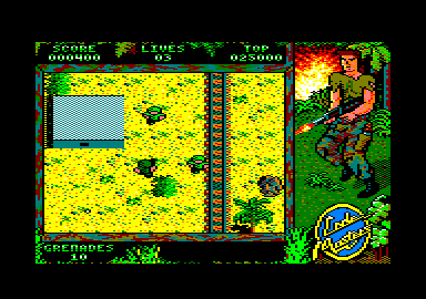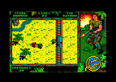 On continue toujours dans les simulateurs, chez Code Master bien que cette appellation ne soit pas du tout justifiée, en l'occurrence. Il s'agit d'un jeu de combat un peu dans le genre de Commando, en un peu plus varié. Après une phase de combat en vue aérienne, où il faut récupérer des bonus qui se transforment soit en Jeep, soit en tir rapide ou en vie supplémentaire, vous vous retrouvez, vue de côté, dans une phase de close combat. Là, vous devez aligner vos ennemis, mais ils ne viennent pas toujours de devant. Il faut des nerfs d'acier et des réflexes en béton si l'on veut s'en sortir indemne. Il y a quatre niveaux, tous plus durs les uns que les autres, Si la phase de combat avait été mieux réalisée, cela aurait pu faire un très bon soft.