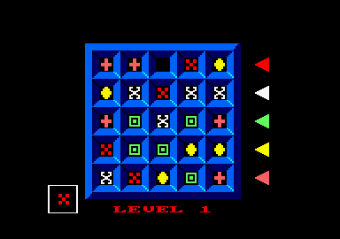 Try this tricky little puzzle devised by PAUL ROBSON SCRAMBLE is an intriguing puzzle which will keep you baffled for days. The idea is simple. On the screen is a 5x5 grid, and each row is filled with one of five coloured shapes. At the start of play one shape is removed, leaving a gap. Next, the grid is scrambled by moving rows left or right and columns up or down. Your task is to sort out the resulting pickle and put everything as it was before. Rules govern the way you can move rows and columns, and it is these that make Scramble a challenge for the keenest minds. Level one is the easiest. You can scroll the rows and columns round the edge as much as you want, but the central three in each direction can only be moved if they contain the gap. On level two things become tougher, as the movement of the middle three is restricted to a range of two squares. You can use the joystick, or cursor keys with the spacebar. To shift a row or column move the marker to it, and push Fire or spacebar while pressing the joystick or keys in the appropriate direction. Good luck. It might seem impossible but it CAN be done. CWTA |