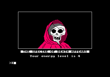 “In a bygone age shrouded in the mists of time dwelt a Master Magician by the name of Merzel the Magnificent. Not being a young man, he sought to find a successor to his power. A series of tests were devised for those who thought themselves worthy of his title. Beneath his castle, Merzel has many strange rooms and a labyrinth (which has only two locations! - Balg) and it is there you shall meet the challenge...” Simply Magic is a GACed game written by Michael and Jane Trewhella. It isn't your usual adventure - the location descriptions are even shorter than an Interceptor game - but each location has a picture to go with it, some of which are very good. Whilst playing the adventure you are occasionally visited by the Angel of Death (another good graphic), who drains some of your valuable energy. Don't worry, though, as energy pills randomly appear while you play. Simply Magic is a game you'll either love or hate - it can be very frustrating at times. It is incredibly difficult to map - more often than not, if you go south from a location and then go back north immediately you will not return to the same location! If you go south twice from the ‘Room of Wishes' you'll end up back at the ‘Room of Wishes'! What is most annoying, however, is that some of the rooms in the game seem to have a random function built in -rooms seem to move around and you can never really tell what the next room will be from them. Perhaps this is to add to the highly magical atmosphere but to be honest it's a real pain when playing and trying to make a map! The puzzles in the game are also different to a ‘normal' adventure - each room has a description, such as ‘Room of Wisdom', ‘Room of Bewilderment' or ‘Room of Unhappiness' in which certain actions (such as crying in the ‘Room of Unhappiness') are needed to elicit a useful response. The game is logical in a warped sort of way - you need to give the pearl to the old man in the Room of Wisdom (Pearl of wisdom, you see...), tie a knot in a handkerchief to avoid falling prey to the ‘Room of orgetfulness' etc. An ingenious idea, this form of puzzle works well but is certainly an acquired taste. To be honest, Simply Magic would be a poor game without the graphics and it is a shame that Joan has chosen to release this game before the others. However, it is difficult to criticize - it's been playtested by Joan and is flawless in this respect. Worth buying but don't expect it to be easy! AA