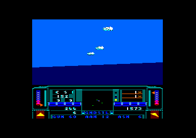 CIBLE DROIT DEVANT Ces petits amuse^gueules ne doivent pas me faire oublier la cible principale de ma mission, le porte-avions. Je lui réserve mes missiles air-sol. Le mode d'emploi est le même que pour les cibles en vol à cela près qu'il faut plusieurs missiles pour arriver à bout d'un engin de cette taille. De toute façon si un seul passage ne suffit pas. il est toujours possible de rentrer au bercail pour refaire les provisions. Traduisez en clair, je peux toujours aller rechercher des missiles, du'fuel ou de l'oxygène, en retournant atterrir sur mon porte-avions. Vous vous demandez peut-être pourquoi, je dois refaire le plein d'oxygène ? Simple, ma cabine est pressurisée, et si la réserve d'oxygène s'épuise, je me retrouve comme un poisson hors de l'eau. Il n'y a rien de plus énervant que de mourir asphyxié au milieu des nuages. De toute façon, comme pour le fuel, une jauge m'indique l'oxygène qu'il me reste.