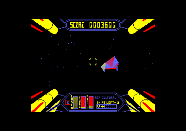Cependant, parfois j'ai remarqué une certaine lenteur dans le déplacement. Rien de grave, et le logiciel reste toujours très agréable. Les différentes cibles qui se présentent à vous sont dures à abattre, mais avec un peu d'entraînement on maîtrise vite le sujet. Le joystick m'a donné de bons résultats, sa gestion est bien faite et ne nécessite aucune adaptation. Ne croyez pourtant pas que le jeu se résume par une promenade de santé. Les ennemis pullulent et ne se laissent pas faire. Trois obstacles se présenteront à vous : les protections de l'étoile, des vaisseaux et des défenses terrestres. Votre bouclier et votre laser seront heureusement ravitaillés aux différents passages des obstacles. A vous de choisir l'étoile et le complexe que vous désirez attaquer. Les planètes les plus faibles et les zone agricoles seront des cibles idéales pour les débutants. Leurs systèmes rudimentaires de défense ne pourront en aucun cas s'oppo-ser à une attaque vigoureuse.