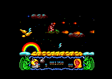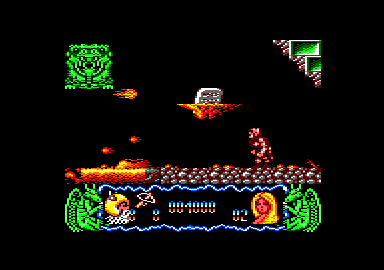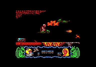 DU GRAND POUM Vous savez, Délivrance est la suite du chef-d'œuvre de Raffaele Cecco , Stormlord. C'est pour cette raison qu'il porte en sous-titre le même nom agrémenté d'un petit II, La première chose qui frappe l'œil du joueur, ce sont les dessins. Fins, beaux et très colorés, juste ce qu'il faut pour le montrer aux copains. Après votre globe occulaire, c'est au tour de vos tympans d'être caressés par les musiques et des sons en tout genre. En effet, toutes les bébêtes sont sonorisées, et avec quel talent, celui de Dave Rogers. Il va de sot qu'il n'y a aucune déception en ce qui concerne l'animation et le scrolling horizontal. Par contre, la difficulté du jeu, je n'ose même pas vous en parler. Il est digne des Espagnols comme les machins-Move et autres jeux TDPEMELMDPV (trop durs pour être mis entre les mains du premier venu). Dans les deux premiers levels, vous pouvez prendre trois types d'armes différents. Il y a des grosses bombes très efficaces pour dégommer un bon paquet de bestioles réunies, l'arbalète qui trouve son utilité pour viser bien et loin. Enfin, les boules-à-pic, qui rebondissent sur les monstres tout en les rayant de la surface de la planète. Si vous me te permettez, je vous donne quelques précisions en plus du récit de notre ami. Il parlait de l'enfer et, croyez-moi, une tonne de cailloux sur la tête, c'est plus moche et ça fait plus mal que les flammes des démons. Pour s'en sortir, il y a une astuce : marcher sur les œufs (non pas ceux que l'on voit). En ce qui concerne les œufs (les vrais de vrai), c'est en les prenant que l'oiseau vous acceptera sur son dos. Un dernier détail, ausssi pas-belles que soient les araignées, vous pouvez leur monter dessus sans aucune crainte, cela vous aidera à finir le deuxième des six niveaux. DE LA GRANDE RECHERCHE Je vous signale que, vu la difficulté du jeu, nous sommes tous preneurs de bidouilles, pokes, codes et autres recherches sur l'original de Stormlord II. Le dieu du CPC, le plus beau des plus beaux, le grand blond aux chaussettes noires est là pour recueillir vos bafouilles. Alors, à vos plumes et bonne chance ! Poum , A100% n°29 |