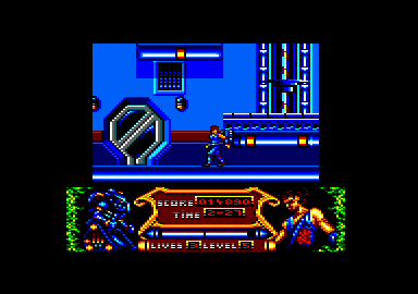 LEVEL 2, LES RUINES L'homme au laser doit escalader les plates-formes. Monter le plus haut possible tout en évitant l'énergie dégagée des accumulateurs haute tension fixés au plafond. Il va de soi que les troupes du mal sont partout, mais notre héros sait qu'ils ne résisteront pas longtemps aux coups du sabre laser. Sur la dernière plate-forme, une corde. Notre héros n'hésitera pas à descendre de crevasse en crevasse. Arrivé à l'avant, dernière étage, son flair lui indiquera de se diriger vers l'Est. C'est ainsi qu'il fera la connaissance des gardiens de hangards et autres sentinelles placées ci et là, pour enfin, affronter les deux chars placés en fin de level. LEVEL 3, LA MERE L'homme au laser est dans une véritable galère. Après de longs moments passés à dégommer toutes les bestioles osant barrer sa route, il affrontera la mère de ce joli monde, une véritable tête sans pitié. T'arrête ici les dégâts car j'ai la rage. En effet, au quatrième level, en affrontant une tête de mort, j'ai fait une chute d'au moins 150 pieds et.. La haine, la haine. Je déteste tomber si bas.