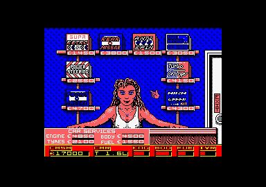 Pendant la course, tous les coups sont permis : queues de poisson, carambolages, éperonnages. etc. Du moment que vous franchissez la ligne au volant de votre voiture, personne ne sera là pour vous empêcher d'employer des moyens peu catholiques. Le tableau de bord affiché en bas de l'écran vous indique dans l'ordre : votre vitesse, votre position dans la course, le nombre de tours que vous avez effectués, l'état de votre moteur, l'état de votre carrosserie, votre réserve en carburant et le taux d'usure de vos pneus. GEREZ VOS GAINS Après chaque course, il faudra donc se rendre au garage pour effectuer les réparations nécessaires et refaire le plein d'essence. Vous pourrez également équiper votre bolide de quelques gadgets qui vous permettront d'augmenter vos chances de succès dans la courses. Par exemple, si vous avez un lance-missiles frontal, vous ne pourrez l'utiliser qu'une seule fois, mais l'adversaire sur lequel vous tirerez sera mis hors course définitivement (la voiture restera toutefois sur la piste devenant alors un obstacle gênant). Faites attention à ne pas dépenser trop rapidement le gain de vos courses car. si vous remportez rapidement les neuf courses du premier niveau de jeu. la compétition sera déjà plus dure dès le niveau suivant. Vos adversaires seront plus coriaces et plus rapides, .aussi il faudra penser à l'achat d'une voiture plus puissante en passant au bureau des ventes entre deux compétitions. Seul regret à propos de ce jeu. il n'est pas possible de concourir simultanément avec un ami. mais l'excellente tenue générale de Super Cars vous fera passer de très bons moments en solitaire devant votre CPC. Avec Shadow of the Beast Switchblade, Lotus Turbo et maintenant Super Cars. Gremlin continue son manage d'amour avec les CPC d'Amstrad. C'est maintenant avec impatience que nous attendrons chaque nouveau jeu de l'éditeur anglais. En tout cas, je vous conseille de vous offrir ce Super Cars si vous préférez le côté arcade d'une course de voiture ; les amateurs de simulation automobile seront, eux, gâtés avec Lotus Turbo. Robby , A100% n°33 |