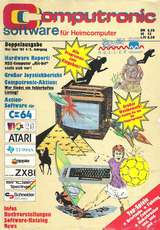 Gefährliche Schatzsuche in den Bergen der Rocky Mountains. Diamanten und Juwelen müssen gefunden werden. Haben Sie schon einmal die schwere Aufgabe gehabt, Diamanten und Schatztruhen aus einer Mine zu bergen? Wenn nicht, dann können Sie diese Aufgabe mit diesem Programm übernehmen. Wenn Sie dieses Programm eingegeben haben, müssen Sie es zuerst auf Kassette speichern. Dann können Sie es mit „RUN" starten. Im Spiel geht es darum, 5 Diamanten und 5 Schatztruhen aus einer Mine zu bergen. Daran wollen Sie aber 2 Roboter hindern, welche Sie schonungslos verfolgen. Sie können die Roboter nur stoppen, wenn Sie Felsbrocken auf diese werfen. Dazu müssen Sie sich unter einen Felsbrocken graben und dann schnell nach links oder rechts flüchten, da SIE sonst das Opfer sind. Aber keine Angst, wenn Sie einen Roboter erschlagen haben, kommt schon der nächste aus der „Garage". Die Roboter können zwar nicht graben, sie können aber auf ihren Wegen gehen und das genau so schnell wie Sie. Aber Achtung! Wenn Sie beim Auf sammeln der Schätze sind, werden Sie langsamer als die Roboter. Die Mine kann nur durch den Haupteingang betreten oder verlassen werden. Es gibt 3 verschiedene Schwierigkeitsstufen: Anfänger, Fachmänner, Experten Anfänger haben 150 Sekunden, Fachmänner 100 Sekunden, Experten 50 Sekunden Zeit, um die Mine mit allen Schätzen zu verlassen. Wenn die Luft knapp wird, ca. bei 20 Einheiten, verfärbt sich die Bildschirmumrandung Orange. In diesem Fall müssen Sie sofort zurück zum Haus, um ihren Luftvorrat aufzufüllen. Aber passen Sie auf, daß Sie von keinem Roboter verfolgt werden, da es sonst kein Entrinnen mehr für Sie gibt! Sie können nur in die nächste Runde kommen, wenn Sie alle Schätze eingesammelt haben und diese zum Haus bringen. In jedem Spiel haben Sie 3 Leben. Wenn alle Leben verbraucht sind, wird der HIGH-SCORE angezeigt und Sie werden gefragt, ob Sie ein neues Bildschirmaufbau: In den oberen 2 Reihen sind die Anzeigen für Punkte, für Luft und für die vorhandenen Leben. Darunter ist der Stützpunkt des Bergarbeiters, dann kommt die Mine mit ihren Seitengängen. In der untersten Reihe befinden sich die beiden Roboterstützpunkte. Punktewertung: Für jeden erschlagenen Roboter bekommen Sie 300 Punkte. Für jede eingesammelte Schatztruhe bekommen Sie 100 x Runde Punkte, für jeden Diamanten 50 x Runde Punkte. Für jede geschaffte Runde bekommen Sie 500 + Luft Punkte. Für jedes Lufttanken bekommen Sie 100 Punkte abgezogen. Steuerung: Sie können den Bergarbeiter entweder mit dem Joystick 1 oder mit den Cursortasten steuern. CT8505 |