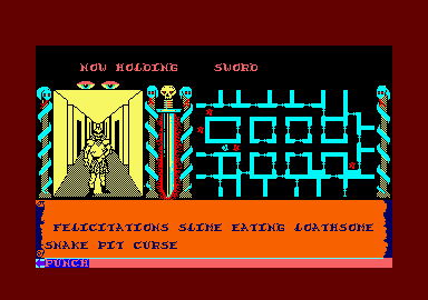 What's In It For You? Up until now. there has not been a great deal to persuade you to go down into the dungeon. Everything seems intent on killing you. However, once you say the magic word "treasure" to an adventurer, all thoughts of danger seem to disappear. Apart from the armour that you are searching for, there are magical swords, rings, potions, brooms, horns and crowns The crown Is especially useful as it helps you detect if an item is enchanted. There is the usual supply of gold around. Perhaps you will be able to persuade a monster to tell you what a treasure is — perhaps by bribing him and then asking him to evaluate It for you. Of course, he may not know or he may Just lie to you but then again, the treasure might be cursed and harmful to you anyway. Treasure is frequently hidden in chests and these may be trapped or locked so you will need to keep your thieving abilities up to scratch. Just because you are in a room, does not mean that you will automatically be able to see your treasure. It may be hung up on a wall or behind a door and you can only see it when you are standing next to it. This means that all rooms must be searched thoroughly before leaving them. Life as an adventurer is not meant to be easy. Magic Numbers As you can imagine in a game of this complexity, there are an awful lot of variables floating around. Some of them are available to you but to complicate matters, you are not told what they are! When you call up the status display, you get a selection of information about your character: your character's name, the number of hits that he can take (when this reaches zero, you are dead but you do recover from your wounds with time and there are healing potions to be found). The next lines down show your current magic level, attack and defence modes. Below that, are ten "magic numbers”. These represent your skill in various attributes. The only problem is, the programmers have decided not to tell you what they mean — you have to work them out for yourself. This you can do by finding and using various magical artefacts and seeing what effect it has on one of the numbers. For example, if you find a magic sword ana one of the numbers changes, you might decide that this number had some bearing on damage done on your magical ability. There are some clues in this article as to what these attributes are — usually skills that have to be learnt or that would change as you become more experienced. Playing the Game The first few times that you play the game, it will seem like a nightmare. You will be looking at the wrong part of the screen, messages will flash up that you don't have time to read. You will stand around while monsters beat the living daylights out of you. You will fall down pits. You will get the menu commands fuddled. You will not be able to manipulate objects as you want to and life will be generally unpleasant. But slowly and surely, things start to fall into place. You remember where the pits are, win a battle or two and find the odd bit of treasure and suddenly. you have this great urge to get to the next quadrant, the next level or the next bit of armour Not that it's easy, but then being a hero never is. And if your character should manage to achieve his quest, you can transfer him into the next scenario several more of which are promised by Christmas, including a village where you can sell your treasures or trade them in for something more useful (who wants six magic swords after all?). There is also the promise of a networking system whereby you ana a friend can hook up your Amstaad to each other and go down the dungeon either trying to help each other or as deadly rivals. All this is possible because of the MIDAS (Multi-Dimensional Animation System) kernel system developed by PSS. By keeping the house-keeping kernel of the program the same, new sets of data can be read in to give a totally new adventure. Swords and Sorcery represents the most sophisticated Dungeons and Dragons type game yet seen on a cassette based micro. As for the future modules, I can't wait! Computer Gamer |
