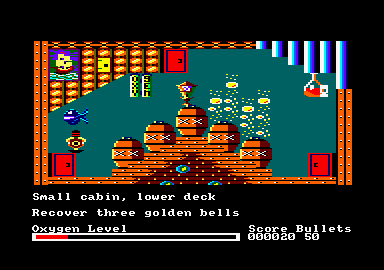 The Devil's Crown (ou en français, la Couronne du Diable) est un jeu d'aventure sans entrée au clavier. Vous dirigez un personnage dans des décors graphiques et vous lui faites ramasser toutes sortes d'objets. Dans chaque pièce, des messages, en anglais, apparaissent à l'écran. Des dangers perpétuels vous guettent et il faut avouer que diriger le personnage, chercher les trésors cachés, éviter les dangers (parfois mortels) tout en lisant du texte en anglais, relève parfois d'une certaine acrobatie cérébrale... On aime ou pas. La musique est agréable, le graphisme très correct. Le but du jeu est de retrouver dans un bateau immergé, les sept diamants perdus d'une couronne disséminés dans quelques quarante pièces du navire. Une seule solution : partir en exploration... Mais comme dans tout jeu qui se respecte, votre mission est toujours contrariée par des importuns divers, des fantômes de pirates qui gardent le bâtiment, des poissons tueurs et autres charmantes surprises qui vous rendront la vie difficile. Car votre vie tient à vos bouteilles d'oxygène, O combien vulnérables... Des réserves sont présentes dans le navire, à vous de les retrouver, de les utiliser à bon escient avant qu'il ne soit trop tard. Un bon jeu d'aventure, style Sorcery mêlant aventure graphique et utilisation du “bâton de joie” (Il y a suffisamment d'anglais dans ce jeu pou y rajouter 'Joystick...). Vous pourrez également diriger votre héros à l'aide du clavier. Déjà qu'il faut lire (et vite) de l'anglais, heureusement que l'écrire nous est épargné... Un bon jeu pour les amateurs du genre. Amstrad Magazine n°6