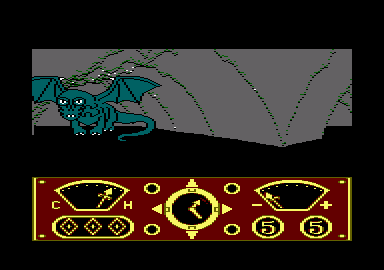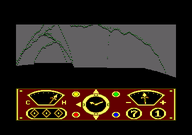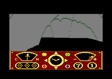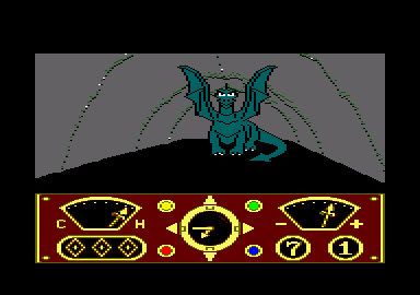 You look out from the front of the Eidolon: a view of the caves and your instrument panel. Arched tunnels in each cave system form mazes of ever-growing complication as you progress through the levels. You can move the Eidolon forward, turn it and reverse. The only problem will be catching the cave wall when trying to round corners. The caves are created using fractals: as you approach a feature you see it in more detail, and the detail is related to the overall shape of the feature. Thus you have lines on the cave walls that continuously change their appearance as you move towards them. This creates a good movement effect. Each monster guards a jewel of different colour. They are killed by shooting fireballs at them, but you'll have to use the right one of your four types. Red fireballs are simple and destructive. Gold ones replenish your energy when picked up. Blue ones give you more time to complete the level when collected and freeze a monster for a time when fired. Green ones transform a monster into another type, but you don't know whether it will be more or less dangerous. Fireballs can be found just floating around for you to collect, but you'd better watch out for the red ones or they'll do you some damage. The monsters have different strengths. The weakest, a rotofly. can be destroyed with one shot. Their behaviour patterns are different as well. Puffer birds can spit fireballs back at you. There are also winged Biter birds, one-eyed Bottlenecks and Greps. But by far the most awesome are the dragons; when you encounter a dragon you will always have a tough fight. Each level loads separately from cassette but it doesn't take long. The graphics are excellent, the fractals giving a good impression of movement and the monsters and fireballs providing the colour and action. The monsters are very nicely animated: waving necks, flapping wings, chomping jaws and all sorts of other mannerisms. The ever-growing complexity of the caves and the increasingly menacing monsters will keep the challenge going through the levels in what is a very impressive piece of programming. BW, AMSTRAD ACTION n°16 |