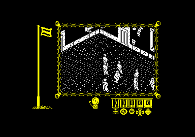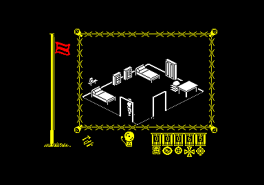 La guerre a son revers, crever la gueule ouverte, ou bien, dans le moindre des cas, croupir pour de longs mois dans un camp de prisonniers. Mais un soldat digne de ce nom doit tout tenter pour s'évader afin de se remettre au service de son pays. The Great Escape (la Grande Evasion) fait allusion à un film célèbre. Dans un premier temps, vous ne faites rien, ce qui nous change des stakhanovistes de l'auto-fire. Le prisonnier moyen, en effet, goûte d'abord le calme et la sérénité du camp avant d'aller se jeter, une fois de plus, dans l'enfer du combattant. Vous assisterez ainsi à la journée tumultueuse d'un prisonnier choyé, délicatement réveillé au petit matin, grassement nourri et luxueusement logé aux frais de la princesse, compté et recompté à l'appel et bouclé dans sa chambrée dès l'heure du couvre-feu. FIRE est le signal des prépara-lits. Dès maintenant, vous devrez fureter un peu partout dans le camp, planquer dans des caches tout ce qui pourra vous servir. Mais attention, si vous manquez à l'appel, ou à la cantine. les gardes auron tôt fait de découvrir ce que vous mijotez et vos préparatifs seront déjoués.