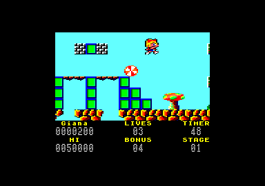 Lorsque vous verrez THE GREAT GIANA SISTERS, vous lui trouverez un air de déjà vu. Effectivement, le principe en est entièrement pompé sur Super Mario Bross, un super jeu d'arcade. Du coup, THE GREAT GIANA SISTERS est un super jeu d'arcade sur CPC !!!