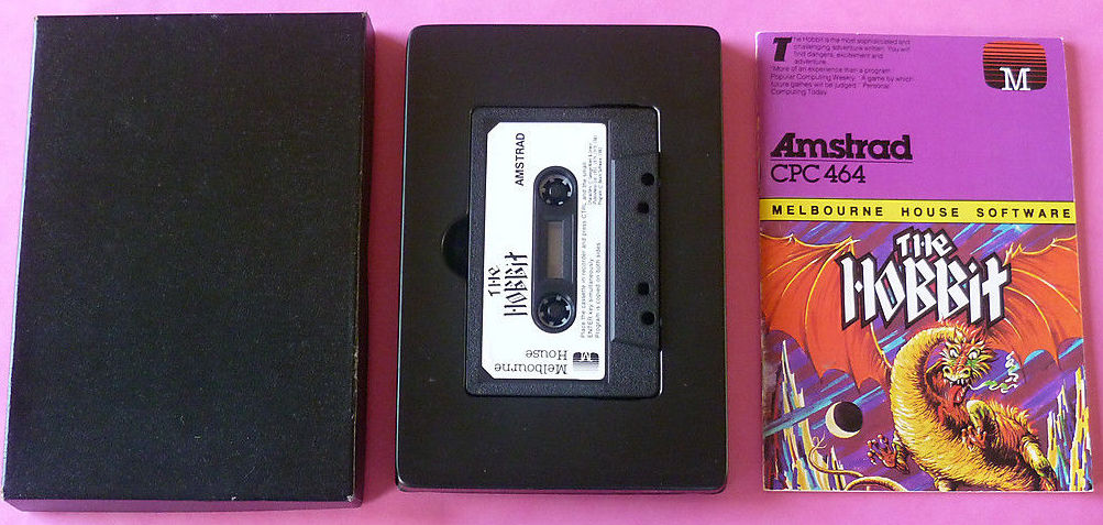 Le hobbit. - Le hobbit est quasiment le seul jeu d'aventure où les difficultés que vous aurez à surmonter sont connues dès le début. En effet, l'intrigue suit très fidèlement celle du livre de Tolkien, « Bilbo le hobbit », fourni avec le logiciel (en anglais malheureusement).Bilbo est un petit personnage d'un naturel plutôt tranquille. Il se voit, un beau jour, entraîné malgré lui par Gandalf le magicien dans une expédition difficile : la quête d'un trésor volé et gardé par un dragon. Bilbo pourra réclamer l'aide de Gandalf et Thorin (l'un des nains qui l'accompagne) ou des gens qu'il rencontre. C'est d'ailleurs l'une des grandes originalités de ce jeu. Les différents personnages sont animés d'une vie propre et n'attendent pas votre action pour faire ce qu'ils ont prévu. Vous pourrez ici formuler vos phrases dans un anglais courant et dans le jargon employé habituellement. Ainsi, l'ordinateur des personnages et à des graphismes de fort bonne qualité, fait de ce jeu l'un des meilleurs programmes sur cassette.