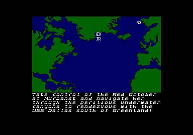 PASSEZ AU ROUGE ! Dans votre cas, ce serait plutôt le contraire. Vous avez en effet décider de quitter le camp soviétique et de livrer le sous-marin RED OCTOBER à l'armée des Etats-Unis. Votre équipage ne se doute de rien, et ce ne sera pas une mince affaire que d'éviter d'éveiller ses soupçons. De plus, à bord de tout navire soviétique de quelque importance, se trouve un officier du KGB, d'un rang élevé, qui ne manquera pas de détecter la moindre anomalie. Peu après le départ vous le tuez. Hop ! ni vu ni connu. Cependant la marine russe a été alertée et tous les moyens vont être mis en œuvre pour vous empêcher de livrer le bâtiment à la flotte américaine, même si cela implique la destruction pure et simple du RED OCTOBER. CAPITALISME ! Le décor est planté, place à l'action ! THE HUNT FOR RED OCTOBER est présenté comme la simulation ultime de combat sous-marin, qu'en est-il dans les faits ? TOUT d'abord sachez que le packaging du logiciel est des plus complets : un manuel d'utilisation très copieux (en anglais malheureusement), avec photos d'écran pour la localisation de chaque fonction (bien que les écrans soient tirés de la version Atari ST, mais les corrections à faire sont précisées), une carte à placarder sur un mur proche de votre bécane, avec la silhouette de tous les navires susceptibles de croiser votre chemin, ensuite un superbe poster couleur, et enfin un badge RED OCTOBER CREW très, très classe. Un design aussi luxueux relève tout simplement du capitalisme le plus éhonté, qui s'en plaindrait ?