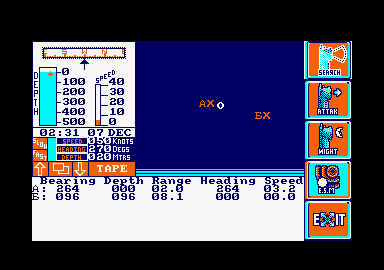 Pour l'instant, vous êtes aux abords des côtes islandaises, entouré par plusieurs navires de la flotte soviétique. Vous êtes dans une situation difficile : vos compatriotes sont à vos trousses, votre équipage n'est pas dans le secret (seuls quelques offi-ciers connaissent votre projet), les Américains n'ont pas totalement confiance en vous après tout, vous pourriez être un espion. Vous êtes donc presque complètement seul, avec une arme efficace et très dangereuse ; le sous-marin Red October. Ce dernier est équipé d'une gestion des commandes par icônes, très pratique pour effectuer des modifications de vitesse, de profondeur et de direction très rapidement. Le facteur vitesse est très important dans le jeu, vous n'aurez pas le temps de réfléchir entre les attaques de vos poursuivants, la conduite du bâtiment, les décisions d'attaques. Et puis, le chemin jusqu'aux Etats-Unis est tout de même assez long. Notre avis : The Hunt for Red October possède un scénario très solide (celui-ci est tiré d'un roman deTom Clancy). En revanche, on est peu convaincu par la présentation du tableau de bord qui n'incite pas à se plonger dans l'histoire. Vous me direz que pour une simulation l'important est de bien simuler. D'accord mais des graphismes encore plus élaborés n'auraient rien gâché. En revanche, voilà un beau "packaging” avec un mode d'emploi complet, un poster et un badge "Red October Crew”, merci monsieur Argus Press Software. AMSTAR |