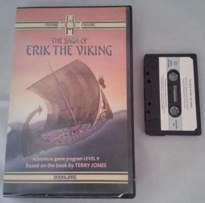 The Saga of Erik the Viking. – Conçu à partir d'un livre de Terry Jones, auteur bien connu dans les pays anglo-saxons, La Saga d'Erik le Viking vous entraînera jusqu'à des rivages fort lointains. Avant de partir, il vous faudra soigneusement visiter les terres de vos ancêtres qui, en votre absence, ont été pillées. Vous y découvrirez les traces des ignobles dog fighters qui n'ont pas hésité à s'emparer de votre femme, à tuer et à piller votre ferme. Vous caresserez amoureusement votre bateau, le fidèle Golden Dragon, qui seul pourra vous emporter à la poursuite de vos ennemis, vous aidera à affronter dragons, serpents de mer et tempêtes et vous permettra de revenir, chargé de trésors et vainqueur de vos ennemis. Mais soyez patient. Ici pas de décisions hâtives ; seul un sens de l'observation développé vous permettra d'être constructif, aidé en cela par des graphismes agréables et un vocabulaire, en anglais, d'une richesse appréciable.Il faut préciser que Level 9, l'éditeur du jeu, était jusqu'ici renommé pour ses logiciels purement textuels et qu'Erik utilise toutes leurs connaissances dans ce domaine. TILT n°18
