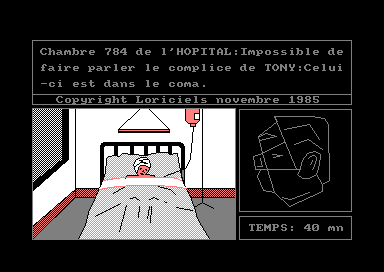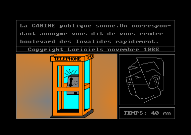 L'intérêt du jeu est qu'il se déroule en temps réel et qu'il vous emmène dans une grande variété d'endroits. Les illustrations graphiques sont réussies, ajoutant du charme au jeu. Vos indices vous permettent d'établir un portrait robot qui apparaît sur la droite de l'écran. Les commandes sont simples : elles se réduisent à l'appui sur une touche , associée à une action. Si l'enquête policière vous tente, voilà un jeu qui vous occupera agréablement ! CPC n°13 - Juillet/Aout 86 |