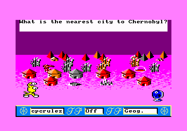 VOYAGE, VOYAGE Dans le hall d'embarquement de la hase aérospatiale, les candidats, représentés par des objets en tous genres, tels que crayon ou télé, attendent en file indienne. Face à eux, TR le héros de la première version du jeu, pose des questions. Répondez juste quand vient votre tour et gagnez un billet pour l'espace. Avant de vous poser sur Genus II, vous devez traverser six galaxies constituées chacune de nombreuses planètes (inhabitables, malheureusement). Sur certaines planètes seulement vous trouverez un objet qui vous permettra de passer dans la galaxie suivante, et ainsi de suite jusqu à Genus II. Abord de la fusée intergalactique, il vous suffit de viser la planète sur laquelle vous voulez atterrir. Une fois sur place, un autochtone biscornu (appelez ça comme vous voudrez) vous pose une question de son choix. Votre écran de contrôle vous indique la catégorie de la question ainsi que le temps qu'il vous reste pour répondre, si vous avez réglé le minuteur. Une bonne réponse sur une planète où se trouve un objet vous permet de le téléporter avec vous à bord de la fusée et de passer dans la galaxie suivante.