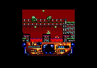 There are six different time zones: prehistoric. Ice age, Egyptian, medieval, 20th century and the future. Each time zone contains different enemies, backdrops and weaponry to pick up. There are plenty of other things to collect too; extra ammo, lives, shields and other special powers. Once in a time zone it won't be long before you're being attacked by Egyptians, killer moles or cute little dinosaurs. These enemies can be bumped off by jumping on or shooting, though some tend to take more than one shot. Generally the cuter they are the tougher they are! The gameplay is similar to Codemasters Wizard Willy. To complete a level Wal must get to its furthest right point, though this is not as easy as it sounds. Routes are often blocked, there are lakes to cross and spikes to avoid. Some require pretty good timing, but Turbo is responsive to keypresses and easy to control. At the end of each zone you will meet an end-of-level guardian. They all have their own attributes and patterns, so killing these is just a matter of some well-placed shots (assuming you didn't waste them on other enemies earlier on). Once the guardian has been destroyed you collect one of the missing parts and move on through time. Hidden in each level is a bonus screen in which extra points can be collected in the form of green pods. These bonus screens are hard to find at first, but once you know what you're looking for it's not to difficult at all. As well as hidden bonus screens there are concealed platforms which need to be jumped on to acquire the extra points and powers - very annoying when you can't find them! Although the game has excellent spot effects, two things let it down; its lack of a sound track and its simplicity. If you're a hardened games player then this won't last you more than a week, though if you're not and you're looking for a good budget this month, then I suggest Turbo The Tortoise.. CPC ATTACK
