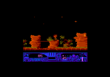 Malder, of course, made off with the sacred amulet, to use it for his own evil ends. However, his wrongdoings managed to break the artefact into lots of pieces - an explosion scattered the bits across the entire land. (These things happen when you mess around with magic.) Anyway, Ulopa grew up an orphan, raised by his Dad's ex-servant Thorax. When the boy turned sixteen, Thorax told him the story of how his relatives were killed, and how Maldur subsequently became ruler of the kingdom, and how Ulopa better jolly well do something about it. So off sets our young hero. He needs to collect the 23 pieces of the amulet, for only then can he destroy Malder for good and banish the darkness that has spread across the land. The thing is, it's not simply a case of wandering around, picking up the pieces and sticking them together with superglue. For a start, the landscape itself is pretty perilous. It's littered with swamps and high ledges and other rough territory. On top of that, hordes of evil creatures under the command of Maldur are out for your blood. The bigest complication of all. though, is that there are two 'worlds'. One is above ground, the other is subterranean. They can be stepped between when the appropriate portals present themselves. Both need to be explored if the quest is to be completed sucessfully. Our hero is not completely defencless, though. He can blow bubbles. Now that may sound like a pretty feeble method of monsterbashing, but it's not. These bubbles can be flung around with some degree of accuracy, and any creature that gets in the way will know about it. They come in three flavours. Strong, super-strong, and double-super-strong.