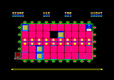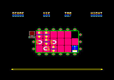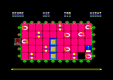 Une pauvre petite disquette doit rejoindre son CPC en se gardant des sources magnétiques, de la chaleur et des virus baladeurs. Aidez-la. CHARGEMENT : Tapez et sauvez les programmes VIRUS.BAS et DATAVIR.BAS. Ensuite RUN "DATAVIR.BAS" vous donnera VIRUSBIN.BIN. Vous lancerez le jeu par RUN "VIRUS". CPCINFOS n°28 |