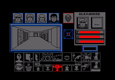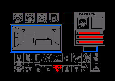 Cette dramatique situation initiale, un manuel de 32 pages, avec une énorme bande dessinée, vous la conte en détail. L'aventure commence exactement au moment où l'hélicoptère tombe en panne de fuel... Un atterrissage en catastrophe sur le parking d'un centre commercial désaffecté, et les ennuis commencent ! Pour le moment, pas de zombis à l'horizon. Un écran superbement organisé vous donne une vue complète de la situation : l'hélicoptère est visible dans une fenêtre graphique qui sera votre champ de vision pour toute l'aventure. Lés changements de lieu provoquent le changement de ce dessin par scrolling horizontal : parfait et extrêmement rapide. Juste au-dessus, le portrait de vos quatre aventuriers : en fait, ils agissent presque isolément, et l'on peut considérer qu'ils représentent quatre “vies” successives pour le joueur. L'aventurier actuellement utilisé a sa carte de visite dans le coin supérieur droit : son portrait, son nom, un cadre où apparait l'objet qu'il tient en main, et trois indicateurs de niveau, pour sa force, sa santé, et son habileté. Attention : toutes les heures (en temps fictif, décompté par une montre sous la carte de visite), l'ordinateur effectue un bilan de santé. Un personnage exténué risque de devenir lui-même un zombi, et par là-même... un ennemi supplémentaire ! Vous devrez donc veiller à nourrir, soigner, et au besoin faire dormir, chacun de vos aventuriers ! Le jeu alterne d'ailleurs des périodes de jour et de nuit.