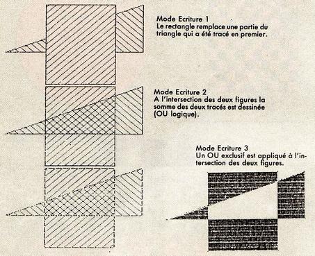 Encore une fois inutilisable sur écran, cette commande permet de choisir le mode de croisement des tracés sur imprimante. Le damier figurant dans le programme de démonstration illustre cette commande ; il y a cinq rectangles pleins tracés en horizontal et en vertical, lorsque deux rectangles se croisent, le croisement est en blanc et non en noir. Pour plus de détails, vous pouvez vous reporter à la figure 4.