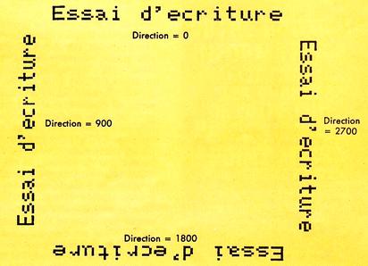 Une fois de plus, cette commande ne trouve son intérêt que sur imprimante. Elle permet d'afficher un texte dans quatre directions différentes (voir illustration figure 3). Les paramètres à entrer dans EntParam(0) sont :