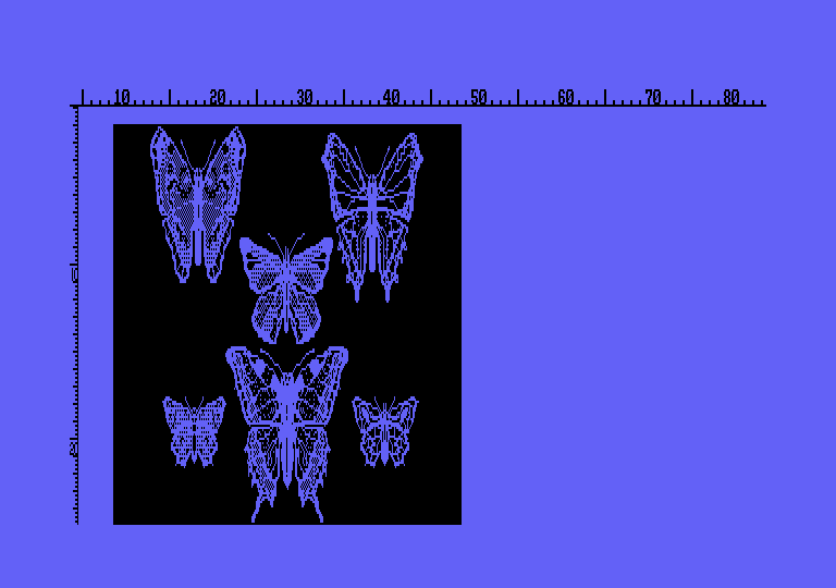 Pixels can be overlayed, or not, by clicking the inverse icon. Block images can be moved, copied or erased. Small areas of the screen can be magnified using the zoom function, enabling individual pixels to be edited.
