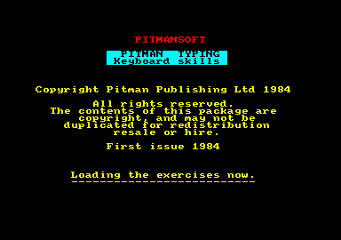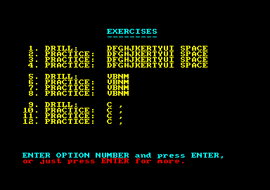 This educational program starts with several explicit pages of instructions. Clearly and concisely explained is the method adopted to improve the speed and accuracy of your typing skills. As a forerunner to the main program, these herald an expertly designed series of practical keyboard exercises. Each lesson requires you to copy-type a series of letters which are seen flashing on an imitation keyboard display on the screen. The second part of each lesson displays a list of short phrases, each incorporating the letters previously learned. Again these have to be copied. Your skills are then measured and a mark is given for both speed and accuracy. Also shown is the suggested minimum standard required, before moving on to the next more advanced lesson. The screen presentation is good, tastefully using a variety of inks and pens, to brighten and enhance what could easily have become a rather lifeless display. A thoroughly useful program that can only serve to achieve it's objective. Looking forward to more proof that learning can be fun. especially in the home environment. D.H., HCW