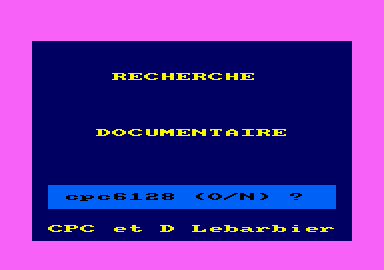 La zone débordement possède la même structure, mais représente un numéro d'enregistrement INDEX qui fait suite à l'enregistrement considéré. En effet, dès que plus de 5 DOCUMENTS citent le même MOT CLE, il y a lieu d'ouvrir un nouvel enregistrement appelé débordement pour celui-ci. Son numéro est mémorisé dans la zone débordement de l'enregistrement précédent. Ainsi un MOT CLE peut être représenté par une liste d'enregistrement INDEX dont la figure 3 donne un exemple. Les statistiques donnent le nombre d'enregistrements total du fichier INDEX, le nombre d'INDEX réels ou entrés dans le dictionnaire donc MOTS CLES, le nombre d'enregistrements annulés : débordements ne contenant que des 0. Le premier enregistrement du fichier INDEX contient le nombre total d'enregistrements dans le fichier. Fonctionnement Les options de consultation ne font qu'exploiter les structures de données précédemment définies et ne méritent pas une explication détaillée. Par contre, les opérations de création et de suppression de DOCUMENT justifient un développement particulier. La création de DOCUMENT consiste à rajouter un nouveau DOCUMENT à la fin du fichier DATA. Il portera donc comme numéro dans le système, le nombre total de DOCUMENT + 1, qui lui-même progresse de 1. Ses MOTS CLES sont recherchés dans le fichier INDEX. Si un MOT CLE est trouvé, il suffit de rajouter le numéro de DOCUMENT à la fin des références de ce MOT CLE, en créant peut-être un débordement. La liste des références de DOCUMENTS pour ce MOT CLE reste nécessairement triée puisque le numéro attribué au DOCUMENT est le plus grand du système, et il n'est pas nécessaire d'envisager une insertion dans la liste des références pour conserver le tri. Dans le cas où un mot clé n'est pas trouvé, une entrée pour celui-ci est créée dans le fichier INDEX, à la fin de celui-ci. Le nombre de MOTS CLES et les numéros d'entrée dans l'INDEX correspondants, sont mémorisés dans le DOCUMENT. La suppression de DOCUMENT utilise un algorithme très simple. Le DOCUMENT est réécri sur DATA avec l'information REVUE = " ". Sa référence est supprimée de toutes les entrées dans l'INDEX qui pointaient sur le DOCUMENT. Les listes de références correspondantes sont "tassées" et de ce fait, peuvent libérer des débordements. Ceux-ci sont alors détachés de la liste, mais leur place n'est pas récupérée, pour ne pas décaler de 1 les enregistrements suivants dans INDEX. Ce principe est identique dans le fichier DATA. L'opération de réorganisation permet de récupérer la totalité de ces emplacements logiquement libres, mais nécessite un recalcul complet des références dans INDEX et des numéros d'INDEX dans DATA. Enfin, notons que l'opération de modification est en fait traitée comme une suppression suivie d'une création. Elle change le DOCUMENT de place et de numéro dans DATA. Organisation mémoire du logiciel Afin d'améliorer les performances, un maximum d'informations résident en mémoire centrale. Plus généralement, nous pouvons dire que pendant son exécution, le logiciel traite des fichiers logiques qui se répartissent entre des zones mémoires et des fichiers physiques sur la disquette. Il est donc impératif de conserver la disquette de données en place pendant toute une session, faute de quoi, un plantage paraît quasi certain. La totalité du fichier INDEX est chargée en début de session. Toutes les modifications qu'il subit pendant la session ne sont pas sauvegardées sur la disquette, ce qui justifie les recommandations d'utilisation (voir le paragraphe correspondant). De la même manière, les créations et modifications de DOCUMENTS sont conservées dans des buffers mémoire résidents (30 pour le CPC 6128, 1 5 pour les autres CPC). Ce procédé optimise très largement l'efficacité de ces options car il évite de recopier immédiatement les nouvelles données sur la disquette. Par contre, il impose de purger ces buffers sn cours de fonctionnement lorsqu'ils sont saturés ou pour libérer de la place mémoire centrale. Toutes les options contrôlent ce point et déclenchent l'opération de sauvegarde des DATA si nécessaire. CE QUI PEUT ETRE MODIFIE Disons tout de suite qu'il n'est pas recommandé de modifier la plupart des algorithmes qui composent chaque option. Il faut admettre que ce logiciel représente un tel niveau de complexité qu'il n'est pas possible de toucher à tout (même l'auteur...). Par contre, il est envisageable d'adapter 3 points particuliers :