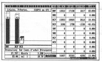 AN Bourse est un programme de gestion de portefeuille boursier sur CPC 664 et 6128. Livré avec un manuel d'une vingtaine de pages et une disquette trois pouces, AN Bourse de AN Informatique s'est fixé pour but "d'accroître considérablement vos gains" en Bourse. Déjà tout un programme... Après chargement, le logiciel commence par vous demander une identification avec mot de passe. Confidentialité garantie mais attention aux étourderies... L'ordinateur vous pardonnera deux erreurs de suite mais pas trois ! A la troisième tentative non valide et infructueuse, l'ordinateur "plante" (c'est-à-dire verrouille sans danger pour les données) le programme. Seule solution : renvoyer votre disquette plantée à l'éditeur qui se charge alors de vous remettre en service le logiciel. Attention, donc la troisième tentative de fraude ne pardonne ! N'oubliez pas non plus d'effectuer une copie de sauvegarde initiale (à mettre en sûreté) puis régulière (au fur et à mesure des saisies) puisque l'éditeur vous en donne le conseil et la possibilité... Ces formalités remplies, vous aboutirez à un menu général regroupant toutes les options principales du logiciel. Cet écran, en mode 2, est malgré tout très lisible. Heureusement car vous n'avez pas accès au paramétrage des couleurs. Le choix des options ne s'effectue pas avec une barre horizontale à positionner sur votre choix, comme on pourrait le penser, mais en tapant Pidentificatior du module choisi, par exemple AO pour chargement des fichiers. A première vue, ce système nous semblait contraignant mais, très bien géré, il est tout à fait souple et agréable à utiliser. Le fait de taper la première lettre fait passer la colonne en vidéo-inversée ; il suffit alors de rentrer le numéro de l'option choisie pour qu'elle apparaisse à l'écran. Cette présentation qui, rappelons-le n'est pas moins bonne qu'une autre, vient surtout de la structure modulaire de l'ensemble : une option = un module. Chaque module peut alors très simplement être remplacé par une mise à niveau plus performante sans modification importante du programme principal. Une utilisation aisée La notice n'est pas un modèle de clarté mais elle est largement suffisante pour permettre une prise en main rapide du logiciel. De toute façon, celui-ci est efficacement protégé contre les éventuel les erreurs de manipulations. L'utilisation de ce logiciel est agréable si l'on excepte les temps de chargement parfois très longs (mais dûs au CPC lui-même). Pour mémoire, il faut près d'une minute pour charger les quelques cent valeurs "types" contenues sur la disquette d'origine. Outre les fonctions de chargement et de sauvegarde de fichiers, vous disposez en tout d'une vingtaine d'options principales : mise à jour hebdomadaire, achat ou vente de valeurs, créations et annulations de fichiers, visualisations graphiques diverses (totale, des fichiers placés...) correction de zones erronées, tendances annuelles et activités par secteurs, changement divers (de noms, de quotités...), gestion des liquidités et du portefeuille en général. Les visualisations graphiques peuvent être obtenues sur imprimante (DMP et Epson ou compatibles) sous forme de hardcopies. Les résultats obtenus sont très satisfaisants. L'écran de travail comporte la plupart du temps fenêtre "graphique" et fenêtre "texte". La gestion des liquidités (achat ou vente) de votre portefeuille est possible -et le logiciel effectue tous les calculs, qu'il s'agisse de règlements comptant, en différé ou mensuels... La représentation "gestion du portefeuille" se fait sous forme d'histogramme en 3D, avec échelle automatique, tandis que suivant plusieurs échelles paramétrables, le programme travaille avec des courbes. AN Bourse permet un suivi complet et complexe de toutes les opérations et évolutions de la Bourse. A noter que les utilisateurs de PCW ou de CPC qui voudraient avoir un aperçu de toutes les possibilités de ce logiciel peuvent commander une version de démonstration pour 100 Francs (déductibles du prix du logiciel complet en cas d'achat). Par ailleurs, le logiciel est livré "personnalisé" (avec écran à votre nom) avec les cours des dernières semaines à la date de l'achat, pour cent valeurs types. Un outsider ? AN Bourse est un bon petit produit, certes moins connu que ses confrères et concurrents mais dont la qualité est indéniable. La totalité de la mémoire est utilisée et le concepteur du programme, M. Gérard Agnésio, arrive à ne plus savoir comment l'améliorer... plutôt si : partant du (bon) principe qu'un "logiciel n'est jamais terminé", l'éditeur propose aux possesseurs de son programme des mises à jours régulières et gratuites. En projet, une mise à jour télématique des cours (éventuellement par un serveur "personnel" made AN Informatique) et même une version pour PC-compatibles en Turbo Pascal... Autant d'améliorations ou de créations qui seront toujours les bienvenues, même si l'ambition de ce logiciel (accroître considérablement vos gains) ne correspond pas toujours à la (dure) réalité de l'économie... FPN , AM Pro n°1 , https://cpcrulez.fr