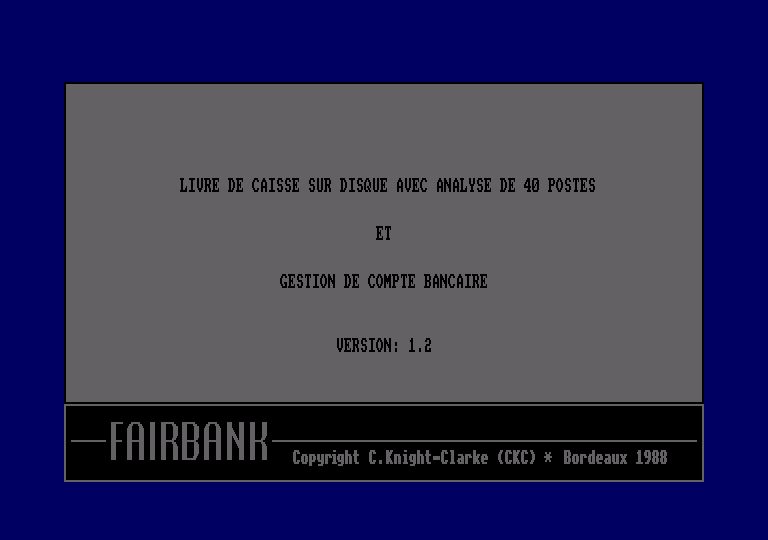 Vous avez certainement des problèmes de budget. Si,si. J'en suis sûr, on dépense sans compter et un jour on se trouve fort dépourvu quand la bise fût venue. Pour endiguer ces excès financiers, il convient de se prémunir et de s'offrir les outils indispensables. Vous possédez un 6128 ? Alors, pas de problème. le logiciel Fairbank vous ira comme un gant.Première précaution avant les premiers essais : une copie de sauvegarde. Une fois ceci effectué, vous pouvez passer au lancement du programme. C'est un menu comprenant 16options qui vous accueille. Le choix d'une option se fait soit par la lettre placée à lo fin du titre ou bien grâce à une barre de menu. Pour vos premiers essais, il est conseillé d'utiliser le fichier 1980 situé sur la disquette. Pour éviter erreurs et confusion, prenez l'habitude de mettre vos différents comptes sur autant de disquettes. Les années seront, elles sauvegardées sur le même support, La première option vous permet de saisir des écritures. Cette saisie est simplifiée par le fait que le mode d'emploi est constamment affiché. Vous pouvez aussi consulter les index des différents postes au moment opportun. La dernière écriture est Inscrite en bas de l'écran et la touche COPY autorise la récupération de certaines données sans avoir à les ressaisir pour l'entrée en cours. Vous entrerez ainsi la date de l'opération, la référence (Chèque, carte de crédit, prélèvement automatique, distributeur de billets...), le libellé, le compte (ou poste), le montant du crédit ou du débit selon la référence choisie. Il faut savoir que les postes sont au nombre de 40. Cette numérotation sera utile lors des opérations d'éditions. Justement l'option suivante dans le menu principal concerne l'édition des écritures grâce aux dates des opérations. Il est possible de lister en avant et en arrière ou bien de faire des modifications en cas d'erreur. L'option effacement supprime une écriture et les opérations de pointage permettent une vérification avec le relevé d'identité bancaire. Seul regret dans cette partie : le déplacement sur les écritures fait un peu fouillis. Les lignes commencent en haut de l'écran puis continuent leur défilement vers le bas (que l'on se déplace en avant ou en arrière), enfin tout l'écran est déporté vers le haut lorsque l'on atteint le bas de la page. Pourquoi ne pas avoir défini une position fixe sur l'écran qui définisse en permanence l'écriture « active » ? Viennent ensuite plusieurs options de listage ; de date à date, sous un numéro de poste, sous un libellé ou encore sur la nature de l'opération. Cette dernière permet par exemple de sortir un listing de tous les crédits. C'est avec l'option impression du menu principal que vous obtiendrez vos listes sur un support papier. Avec le contrôle du relevé bancaire, vous allez pouvoir confrontez vos opérations à celles pointées par votre banque. Le principe de déplacement sur lés écritures est le même que celui employé dans la partie éditions. Chaque opération vérifiée peut être pointée grâce à une petite étoile. Puis vient le moment de la vérification. Après avoir entré le mois courant, et le solde indiqué sur le relevé, vous avez connaissance des différences éventuelles. L'option « soldes des comptes » affiche les 40 postes avec les deux colonnes "crédit' et "débit". Index des comptes permet non seulement l'affichage des postes et de leurs Index mais également la modification du nom des postes. Une autre option autorise le changement du numéro des postes ou même l'échange de deux numéros et cela sur l'ensemble des écritures.