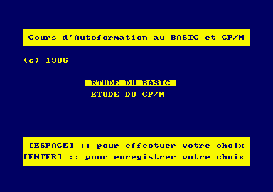 Distributeur : Vidéo-club de Bobigny Support : disquetteCe cours de formation au Basic de l'Amstrad a été réalisé par un professeur d'université. La cassette contient quatre cours répartis sur les deux faces. Elle n'est pas accompagnée d'un manuel, mais pour mieux suivre les leçons il faut prévoir un crayon et une feuille de papier. Les premières leçons vous apprendront quelles sont les parties essentielles d'un ordinateur. Puis vous commencerez à étudier les instructions du Basic. Chaque instruction est entièrement détaillée. L'élève peut suivre sur l'écran les conditions d'utilisation de l'instruction, voir son effet dans un petit programme. S'il ne comprend pas il est toujours possible de revenir plusieurs fois sur la même leçon. Lorsque l'ensemble des instructions d'un cours est assimilé par l'élève, une série d'exercices l'attend. Des questions lui seront posées et les réponses donneront droit à la fin des exercices à une note. Il est donc très facile de voir ses progrès. Chaque partie d'un cours est accessible directement. Il est donc possible de ne travailler que les exercices ou une instruction particulière. Ce logiciel avait été conçu pour des enfants, mais il sera certainement très utile à tous. C'est un cours à conseiller au débutant qui souhaite apprendre le langage Basic de l'ordinateur Amstrad. Le cours d'autoformation est disponible au Vidéo-club du centre commercial de Bobigny 2, 93000 Bobigny.