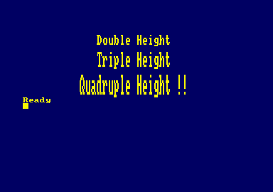 Big letters are the norm in this little program. Put the text into lext$, the height (from 1-8) in h and the screen coordinates into xp & y p, then GOSUB 70. You can input letters of any size and there's also a handy demo included.