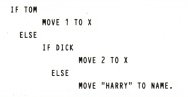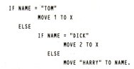 IF statements can be made more readable by "88 levels" in the DATA DIVISION. For example, the above IF statement could be written as:-