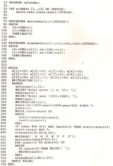 CONCLUSION HiSoft Pascal 4T/D is a fast efficient implementation of Pascal which compiles to Z80 object code. This code may then be used on other machines without the compiler installed, providing the opportunity for commercial sales of programs written with it. The speed of HiSoft Pascal, in comparison with BASIC, makes it a very attractive language in which to write, particularly since many of the commands and structures are quite similar, at least in appearance, to their BASIC counterparts. The addition of Amstrad-specific procedures, easy access to the operating system and the inclusion of the turtle graphics package make this version of Pascal very attractive to anyone considering a second language to run on their micro. It can be thoroughly recommended. ACU #8511 |