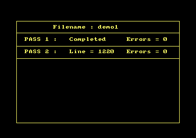 The compilation process is fairly fast, and easy to use. You simply run the compiler, bung in your work disk, tap in the filename you wish to convert, and leave the computer to it. If there are any problems, a results file is created which can be examined and errors pinpointed. Assuming there are no problems, a machine code file is produced. To use it, a small (provided) BASIC loader has to be run, which clears memory space and loads the binary file.