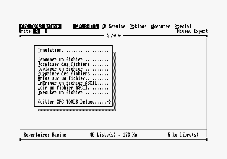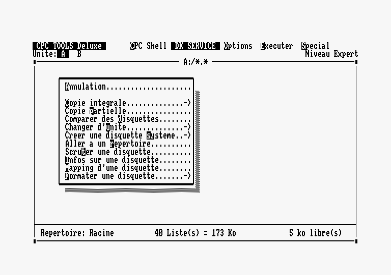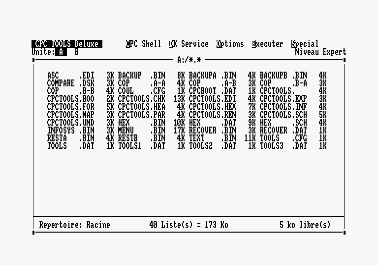 Au lieu de créer 12 logiciels performants nous en avons concu un qui les remplace tous.CPC TOOLS DELUXE est constitué de 12 logiciels qui permettent de triturer une disquette dans ses moindres détails. Vous pourrez également programmer en BASIC et en assembleur. Ce logiciel est tellement complet qu'il est difficile d'en parler en quelques mots. Je vous propose donc de décortiquer chacunes des 12 parties.