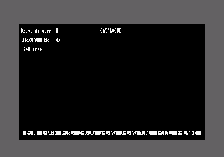 You'll be familiar with most of these with the exception of Title. This lets you give a name to each side of your disc up to a maximum of 25 characters. The title is saved in User 15 so the file is normally invisible. The various ON ERROR statements will prevent the CPC6128/664 stopping should a disc error occur. They make debuggings little difficult so it's a good idea to make sure you've typed Catalogue in properly by using the checksum program. Unfortunately it isn't possible to trap disc errors from Basic on the CPC464, so if you make a mistake such as trying to run a text file Catalogue will stop with an error report. To use Catalogue simply save it using the filename DISC then type: RUN "DISCor for those or you with Arnor's Utopia rom, press Ctrl+Enter. You will be presented with a catalog of all the files in User 0 on the disc. Use the cursor keys to select and press the key corresponds the operation required. These shown at the bottom of the screenFrom time to time you will error messages returned Amsdos such as ????????.BAK found. Don't worry, this sin means you tried to erase bad files when there wcrn't any. Other message you will get TITLE. DSC not found which oce when you are titling a disc why does not already have a title. I suggest you save a copy of program on each side of all you discs and get into the habit of running it whenever you put a disc the drive. It certainly makes use discs more convenient and you soon wonder how you manage without it.