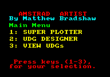 Artist and Sprite Designer is a basic graphics utility package for the Amstrad with a number of sophisticated features. Essentially it's two programs, a bog standard but perfectly usable Sprite designer and an excellent drawing program. There are certain elements any such program must have: boxes, circles, and fill are all present but you also get a stipple and a special two colour fill. You can also isolate a block of screen and shunt it to a new position, you can also draw an elipse of spokes and 'wash over' over existing colours with a new one. Another function allows for other shapes like pentagons, octagons and diamonds. The manual is small but contains enough information to get you going. Graham Taylor , Popular Computing Weekly