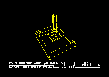 ELECTRONIC COAT-HANGERS Recently there has been a spate of drawing and design programs for the Arnold. Most are artistic paintboxes, providing an electronic canvas to doodle on. Amor has a reputation for the case and power of its products - like Maxam. Does this latest offering have anything novel as well? Yes, it certainly does. Mode! Universe is an introduction to three-dimensional graphics. It enables you to create 3D objects and to animate them in mode 1.1 can't think of another program that does anything like this. The program can accept input from the AMX mouse, a joystick or keyboard to move the various cursors and pointers which control exactly what happens on screen. Nearly everything the program does is menu-controlled - typing in data from the keyboard is kept to a minimum.
