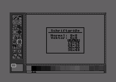 Die Menüpunkte im einzelnen: 1. FREIHANDZEICHNEN (Stift) Hier ist die Benutzung des Joysticks anzuraten. Der Grafikcursor wird bewegt, beim Drücken der Feuertaste wird in dem aktuellen Muster gezeichnet. 2. PINSEL (Pinselspitze) Wie bei Punkt 1. 3. LINIE ZEICHNEN (einzelne Linien) Mit dem Grafikcursor (hier ein Fadenkreuz) den Startpunkt anfahren, COPY/Feuer drücken, Endpunkt anfahren und nochmal COPY/Feuer drücken - die bisher weiße Linie wird im aktuellen Muster neu gezeichnet. 4. LINIEN ZEICHNEN (zusammenhängende Linien) Wie bei Punkt 3, der Endpunkt der vorherigen Linie entspricht dem Startpunkt der nächsten Linie; wird am Endpunkt zweimal COPY/ Feuer gedrückt, kann ein anderer Startpunkt angefahren werden. 5. RAHMEN (zwei nicht ausgefüllte Rechtecke). Wie beim Linienzeichnen zwei Punkte anwählen, das Rechteck wird gezeichnet. 6. RECHTECK (zwei ausgefüllte Rechtecke) Siehe unter 5. 7. KREIS (Kreissymbol) Kreismittelpunkt anwählen, durch Pfeiltasten links/rechts Radius verändern, COPY/Feuer drücken — Kreis wird gezeichnet. 8. SCHEIBE (ausgefüllter Kreis) Wie unter Punkt 7. 9. SPRAY (Sprühdose) Cursor bewegen, COPY/Feuer drücken, um zu sprühen. Je länger an einer bestimmten Stelle verweilt wird, desto mehr Punkte werden gesetzt. 10.FILL (Farbeimer) Cursor an die richtige Stelle bewegen, COPY/Feuer drücken, die Fläche wird zunächst weiß ausgefüllt. Soll das Fill rückgängig gemacht werden, einfach nur ESC drücken. Wird eine andere Taste gedrückt, z.B. COPY/Feuer, so wird endgültig in dem gewünschten Muster aufgefüllt. 11. ZOOM (Lupe) Die letzte Position des Grafikcursors wird als linke obere Ecke des Zoombereichs angenommen, der oben links in Originalgröße dargestellt wird. Die Position in bezug auf den Gesamtbildschirm und den Bildschirmausschnitt wird unten links durch ein kleines Rechteck angezeigt. Der Cursor wird mit den Pfeiltasten bzw. dem Joystick bewegt. COPY/Feuer setzt oder löscht einen Punkt. Die Cursortasten zusammen mit CTRL bewegen den Zoombereich. 12. BESCHRIFTEN (Buchstabe A) Nach Anwählen dieses Menüpunktes erscheint ein Untermenü, das verschiedene Schriftarten und -großen anbietet. Der Cursor steht immer auf der letzten Wahl und wird mit den Pfeiltasten auf-und abbewegt. COPY/Feuer wechselt in den Schriftmodus; es ist ein Cursor zu sehen, der an den Startpunkt des Textes gefahren wird. Erneut COPY/ Feuer drücken. Nun kann der gewünschte Text über Tastatur eingegeben werden; Fehler werden mit DEL korrigiert. ENTER beendet die Eingabe. Wichtig! Auch beim Beschriften wird das aktuelle Muster berücksichtigt. 13.UNDO-FUNKTION (?! Symbol) Mit Ausnahme von FILL, das eine eigene Undo-Funktion hat, können die: jeweils letzten Änderungen am Bild: rückgangig gemacht werden. Dies funktioniert jedoch nur, wenn inzwischen kein anderer Menüpunkt angewählt wurde. 14. KOPIERFUNKTION (zwei Rechtecke mit Pfeil verbunden) Wie bei Punkt 6 ein Rechteck über den zu kopierenden Bereich legen, der invertiert wird. Beim zweiten Mal COPY/Feuer kehrt das Programm automatisch in den Menümodus zurück, damit das Arbeitsfenster gegebenenfalls verschoben werden kann. Nun nochmals diesen Menüpunkt wählen, um das Objekt an die richtige Stelle zu bewegen; COPY/Feuer kopiert es endgültig. Anmerkung: Da leere Flächen nicht mitkopiert werden, können auch unregelmäßig geformte Objekte gut in bereits bestehende Zeichnungen eingefügt werden. 15. AUSDRUCK (Druckersymbol) Das Gesamtbild wird in verkleinerter Form auf dem Bildschirm ausgegeben, und es erscheint eine Sicherheitsabfrage. Der Cursor wird mit den Pfeiltasten links/rechts bewegt, COPY/Feuer bestätigt die Antwort. Die Steuercodes sind für EPSON-kompatible Drucker vorgesehen, eine Anpassung kann im BASIC-Programm ARTWORX.BAS vorgenommen werden. 16.DISKETTENMENUE (Disketten-Symbol) Alle auf der eingelegten Diskette vorhandenen .AWX Files werden angezeigt, unter dem Directory befindet sich das Diskettenmenü. Die Pfeiltasten links/rechts bewegen einen Cursor, um zu entscheiden, ob ein Bild geladen oder gespeichert werden soll. Nun Filenamen eingeben und ENTER drücken; nach einer Sicherheitsabfrage wird die gewählte Funktion ausgeführt. 17. ARBEITSFENSTER LöSCHEN (CLS) Aus Sicherheitsgründen wird nicht der gesamte Bildschirm, sondern nur das Arbeitsfenster gelöscht. Auch hierbei wird das aktuelle Muster berücksichtigt. 18. PROGRAMMENDE (END) Nach einer Sicherheitsabfrage wird das Programm beendet. Wichtig! Nicht vergessen, vorher das Bild abzuspeichern! Verwendung von Bildern, die nicht im ArtWorx-Format vorliegen: Jeder Anwender bevorzugt ein anderes Grafikprogramm. Da sich das Art-Worx-Aufzeichnungsformat für Bilder von dem anderer Programme erheblich unterscheidet, wurde der ArtWorx Converter geschrieben. Dieser ermöglicht nun die Umsetzung von Bildern, die in MODE 1 oder MODE 2 vorliegen, wobei diese auch in bereits bestehende ArtWorx-Bilder eingefügt werden können. Bei Bildern in MODE 1 werden alle Farben außer Farbstift 0 in Farbstift 1 umgewandelt. Zusätzlich besteht noch die Option, Bilder, die mit CPC-GIGA-CAD (aus dem siebten Schneider Sonderheft von Happy Computer, Verlag Markt und Technik) erstellt wurden, in das ArtWorx-Format zu konvertieren. Die Giga-CAD-Bilder müssen natürlich als .PIA-File vorliegen. Bei Bildern in der doppelten Auflösung wird der Filename der oberen Hälfte angegeben. Die Bedienung des Programmes ist unkompliziert, da einfach nur die Anweisungen befolgt werden müssen. Es geht davon aus, daß Sie eine Grafik- und eine sogenannte Artworx-Diskette eingerichtet haben. Auf der Grafikdiskette sind die Bilder vorhanden, die umzusetzen sind, auf der ArtWorx-Diskette befinden sich dann die fertigen .AWX-Files. Hinweise zum Abtippen Der Reihe nach alle Programmteile eintippen und abspeichern. Nun die Datalader starten. Sind sie fehlerfrei, werden die generierten Binärfiles automatisch gesichert; fehlerhafte Zeilen werden angezeigt. Es sollten sich jetzt