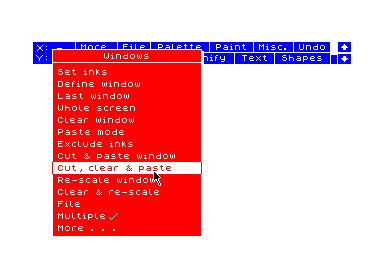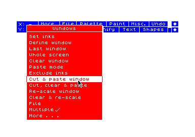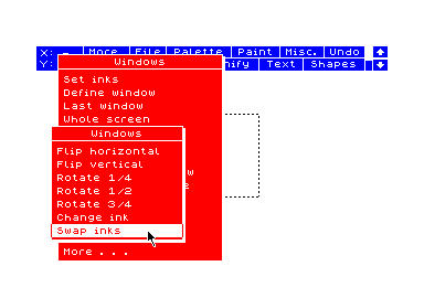 Ensuite, viennent les options couper/ coller, qui donne la possibilité de capturer l'image ou l'une de ses portions, pour la déformer ou non et l'afficher une fois le travail effectué. Il est d'une facilité déconcertante de jongler avec ces fenêtres, en leur faisant subir, par exemple, des rotations sur l'axe de symétrie vertical, horizontal ou même angulaire. Si je vous dis qu'en plus je peux les sauvegarder, vous me dites: "non c'est pas possible !" Et moi je vous réponds: "mais si, c'est possible !" (je sais ça fait pub !).