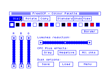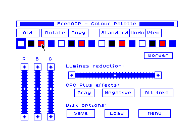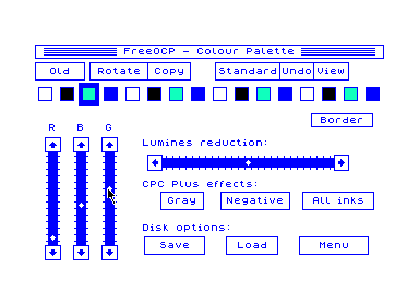 FreeOCP offre la possibilité permuter en couleurs ASiC , cette palette étendue de 4096 couleurs du CPC+ au lieu des 26 du CPC ancienne génération.