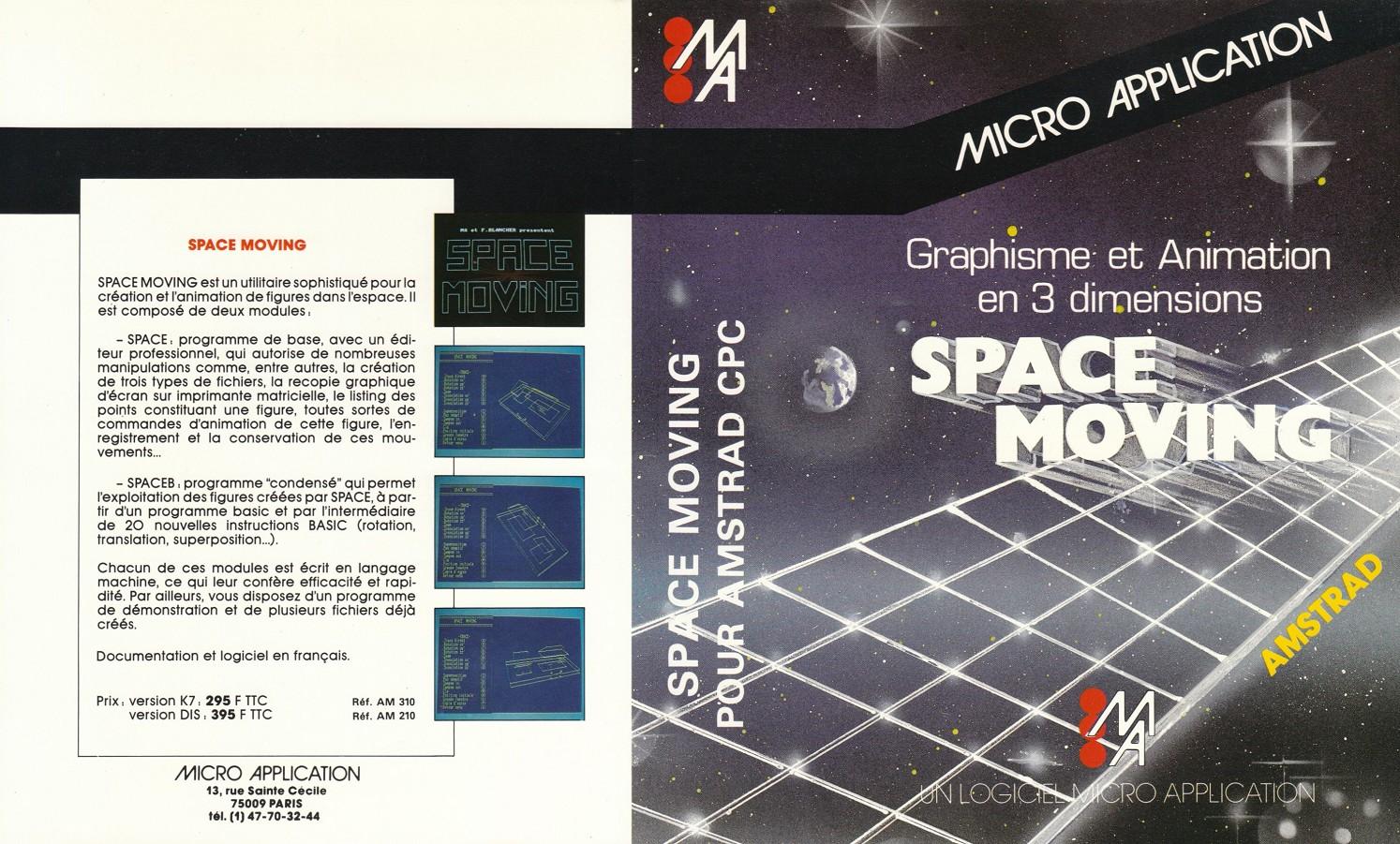 EXCLUSIVEMENT EXCLUSIF En avant-première et juste pour vous faire frémir devant vos claviers, Micro Application vous présente ses deux nouveaux utilitaires pour Amstrad, tous deux dédiés au graphisme, Space Moving comporte tous les avantages d'un éditeur de volumes (représentation en fil de fer) accompagné d'un manipulateur des sus-dits volumes. Ce logiciel permet la création d'une séquence animée en trois dimensions réutilisable dans un programme Basic ou machine. Un bon plan pour les programmeurs quoi.