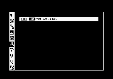 Text facilities are okay, although not in the league of Advanced Art Studio: only one size is available, although enlargement is possible by using the memory facilities. A simple font designer is provided, as well as a number of fonts on the B side of the disc. One nice feature is the option to display highlighted text, which is normal text with a differently coloured outline.