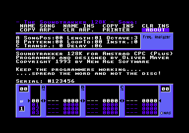 Die Band aus dem Computer Professionelle Sounds mit dem CPC Computer-Musik ist immer mehr im Kommen. Daher ist es nicht verwunderlich, daß uns in diesem Monat gleich zwei Musikprogramme zum Test vorlagen. Jahrelang war weit und breit kein geeignetes Musikprogramm in Sicht, das den Sound-Chip des CPC auch nur annähernd ausnutzte. Dann brachte UBI-Soft "Equinoxe", laut Herstellerangabe der "neue musikalische Standard für den CPC". Nur wenige Tage später erreichte uns dann "Musizier mit mir" vom deutschen Softwarevertrieb ALL SYSTEM SOFTWARE. Originalton des Begleitschreibens: "Das neueste und wahrscheinlich auch das beste Sound-Programm für die Amstrad-CPC-Rechner". Grund genug für uns, die beiden Kandidaten einem ausführlichen Vergleichstestzu unterziehen. Der Sound-Chip des CPC ist besser als sein Ruf. Wenn der Klang, den Sie bisher von Ihrem Computer gewohnt sind, mehr einem Scheppern als einer schönen Musik gleicht, ist vielleicht der Lautsprecher schuld. Denn an diesem Teil wurde beim guten alten CPC doch etwas gespart. Bevor Sie sich also von der Musik verzaubern lassen, sollten Sie Ihren Computer über ein Kabel mit der Stereoanlage verbinden. Dann sind Sie bestens gerüstet für Experimente mit unseren Testkandidaten. Beide Programme lösen sich von der bei Musikprogrammen bisher verbreiteten Darstellung der Töne auf Notenlinien. Um gute Klangergebnisse zu erzielen, orientieren sie sich stärker am Computer und seinen Möglichkeiten als an klassischen musikalischen Regeln. Beginnen wir zunächst mit Equinoxe. Der Bildschirm ist zweigeteilt. Die untere Hälfte wird von einer Klaviertastatur eingenommen. Im oberen Feld befinden sich viele Buchstaben und Zahlen. Diese entpuppen sich als die programmierte Tonfolge. Dargestellt werden die Töne nicht auf Notenlinien, sondern durch ihre Buchstabenbezeichnung. Wenn in der ersten Spalte also beispielsweise C-3-5 steht, bedeutet dies, daß der Computer auf Kanal 1 ein C der Oktave 3 mit der Klangfarbe 5 spielt. Direkt darunter befindet sich der nächste Ton. Wird eine Musik abgespielt, scrollt diese Anzeige durch. Klangfarbe, Rauschen und Oktave können für jeden Ton einzeln eingestellt werden: der Schlüssel zu interessanten Effekten. Auffallend ist. daß weder Lautstärke noch Dauer eingestellt werden können. Diese können über Pausen und Hüllkurven reguliert werden. Die Klaviertastatur kommt dann zum Zug, wenn im Menü die Option MANUAL gewählt wurde. Das bedeutet, daß Sic mit den oberen beiden Tastenreihen spielen können wie auf einem Klavier. Auch hier ist es möglich, vorher Oktave und Klangfarbe einzustellen. Diese Funktion eignet sich gut zum Komponieren, weil man einfach drauflosspielen kann.