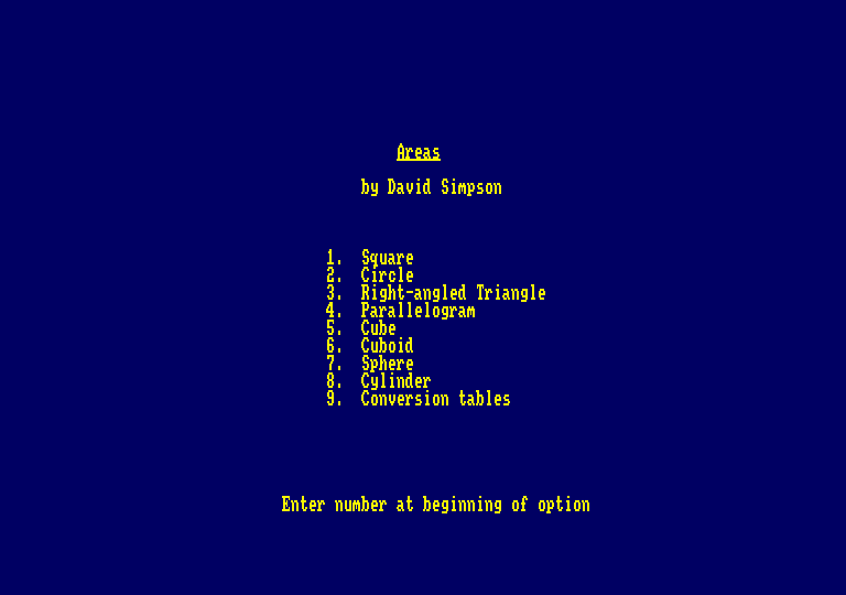 This one comes courtesy of David Simpson of Yorkshire (likley Moor by tat - Dave), and will calculate areas of just about every shape you're likely to come across this side of A-level maths. It also copes with loads of different measurement units (I'm not sure on this, but wouldn't that work anyway?). As if this wasn't enough, there's also a built in conversion table, so get typing!