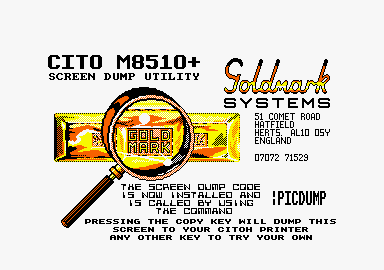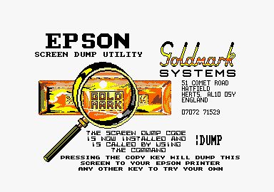 - EPSON COMPATIBLE PRINTERS : Specifically written for the DMP2000/3000 it will work on many Epson compatibles. It gives a well shaded full width dump.